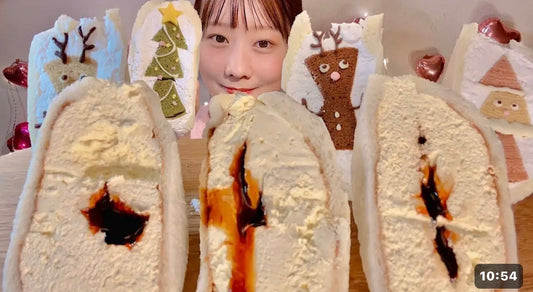 召し上がっていただいているのは とろ〜りプリンサンド クリスマス魔法のバウムサンドセット です!